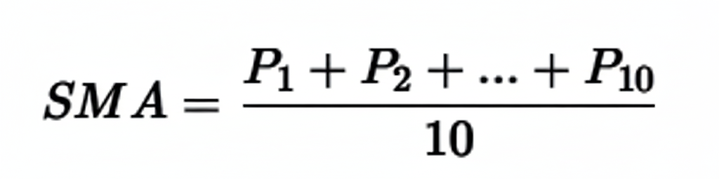 • SMA: The calculation is straightforward. For a 10-day SMA, you simply sum the closing prices of the last 10 days and divide by 10.
